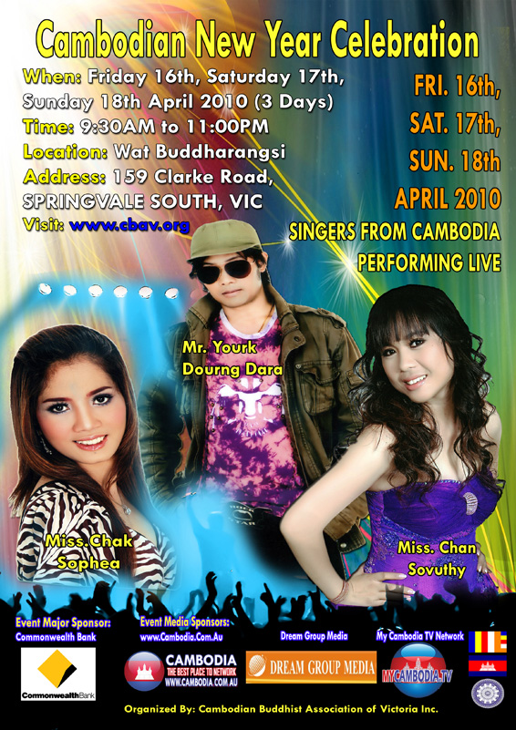 April 16th-18th 2010 - Cambodian New Year Celebration with Mr. Yourk Dourng Dara, Miss Chak Sophea and Miss. Chan Sovuthy in Springvale South, Victoria
